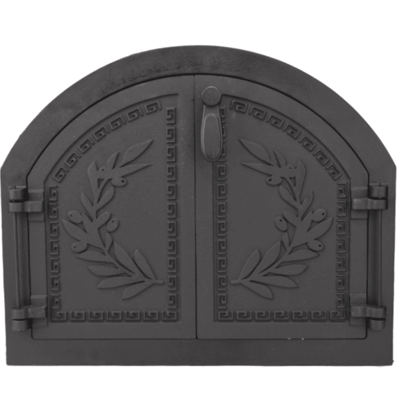 Porta in ghisa da forno a legna sportello pizza 2 ante arco cm 53,6×35,8 h 205ev