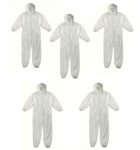 Kit 5 pz tuta protettiva da lavoro monouso polipropilene XL cappuccio 331ra