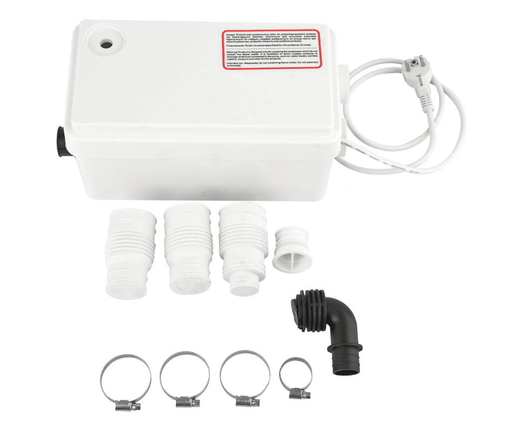 La pompa è progettata per essere installata sotto la vasca da bagno, in un piccolo mobiletto sotto il lavandino o persino in un piatto doccia alto da incasso