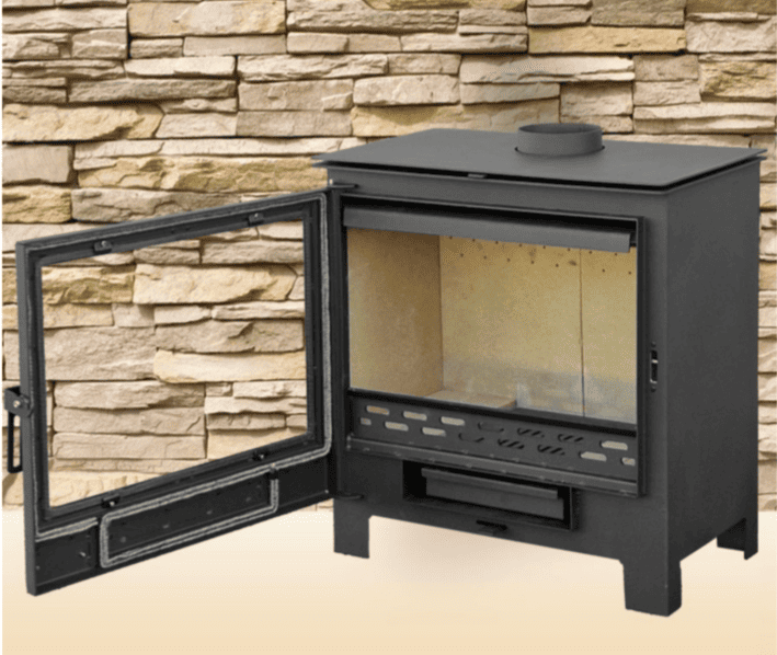 Stufa a legna in acciaio vetro 14 KW camino con piedi riscaldamento cm 70x42x73 h nero 999BMX
