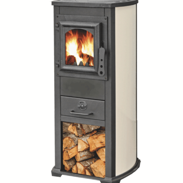 STUFA A LEGNA GHISA VETRO 7 KW CAMINO CON PORTALEGNA cm 39x48x89 BEIGE BRNA LUX 132