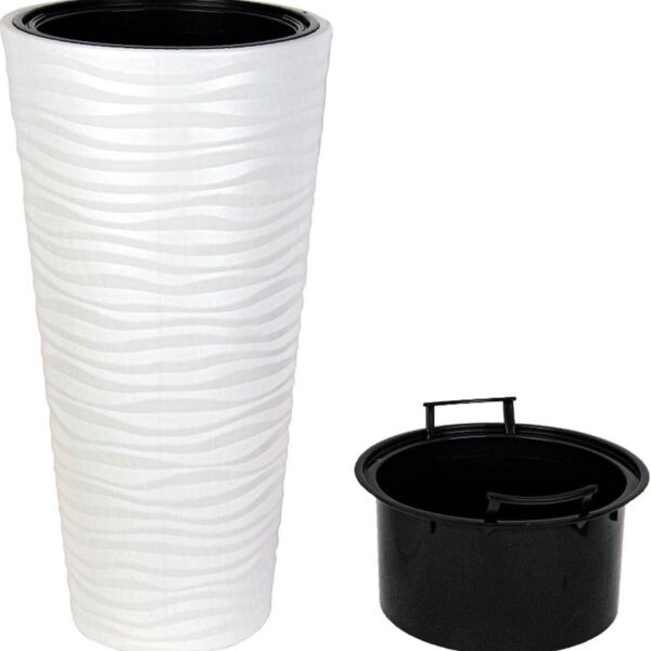 Vaso da fiori fioriera alto 80 cm piante slim bianco bianco fantasia ondulato 13,7 lt litri 994ds