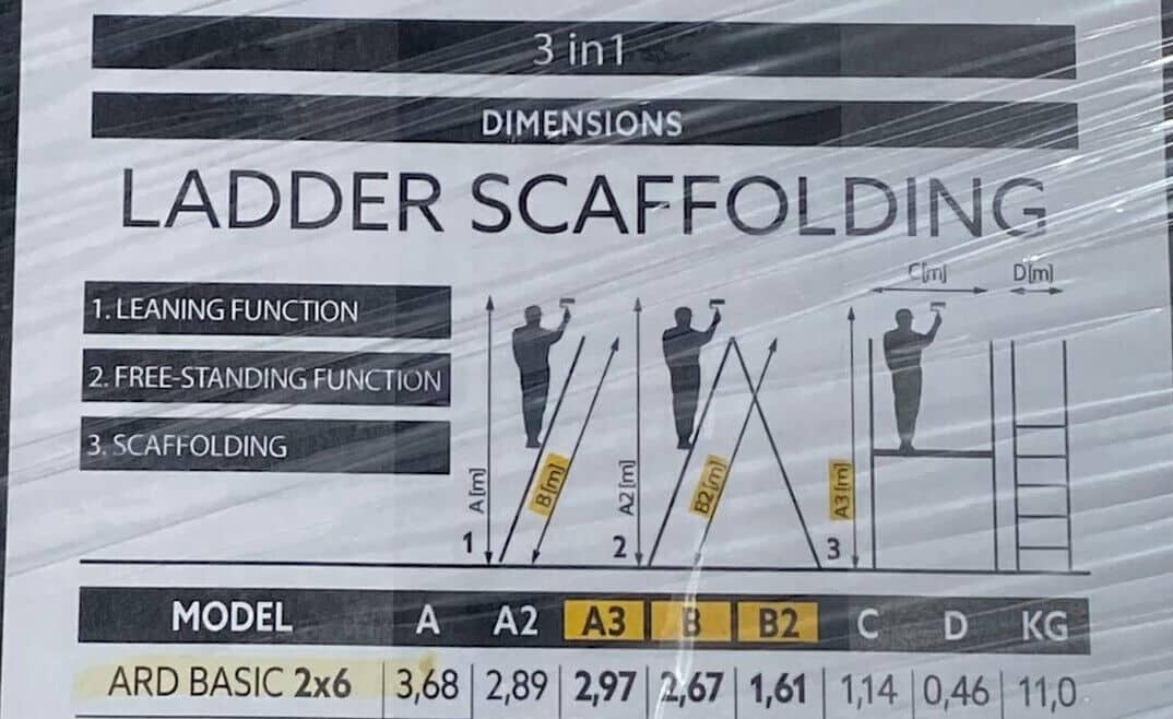 L’impalcatura a scala è una costruzione estremamente durevole e solida realizzata in alluminio di alta qualità, resistente anni condizioni atmosferiche sfavorevoli