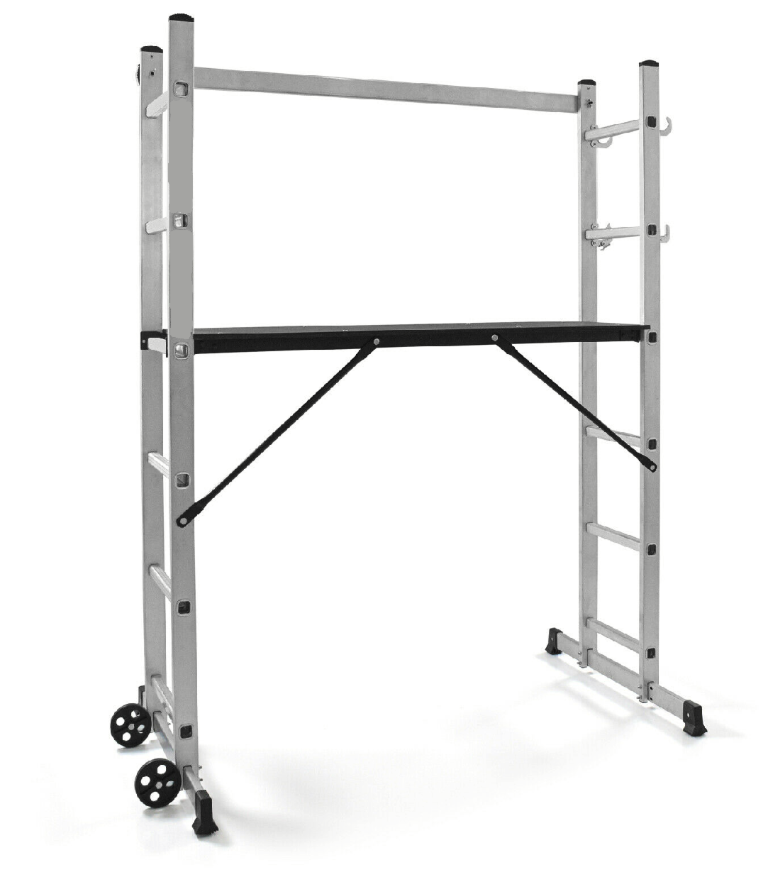 Grazie alle 6 diverse regolazioni disponibili e’ utilizzabile come scala dritta, scala ad A e ponteggio