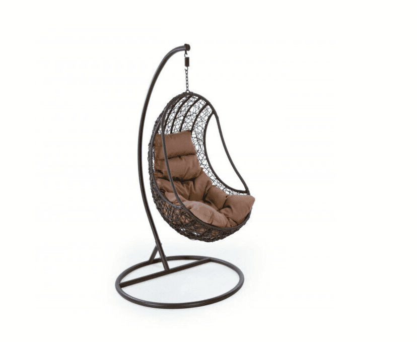 Immergiti nella tranquillità del tuo giardino con la poltrona pensile in polyrattan marrone sospesa, una fusione perfetta tra comfort e stile