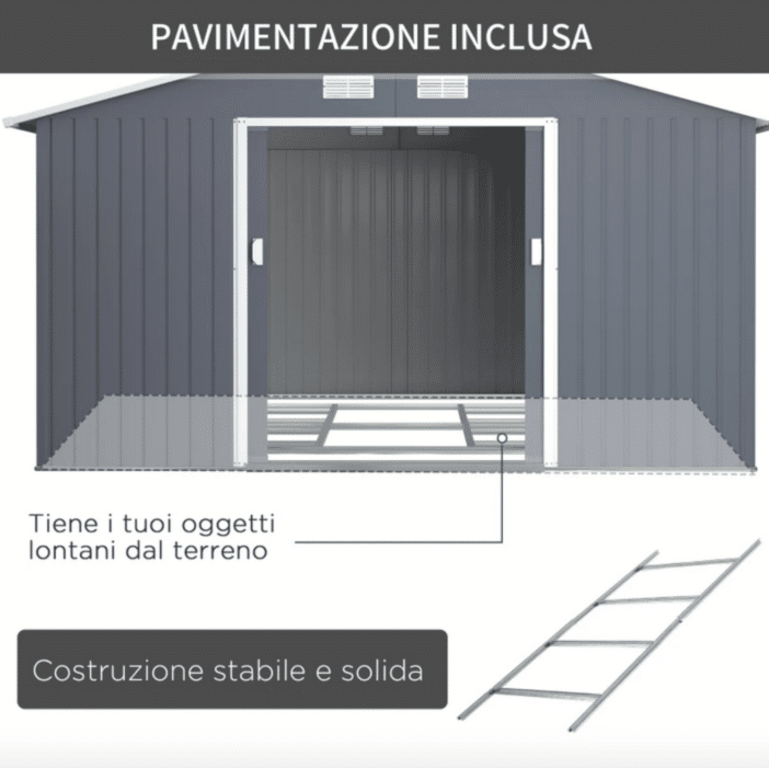 CASA CASETTA RIPOSTIGLIO CAPANNA BOX GIARDINO LAMIERA ATTREZZI 13 MQ 3,4×3,8 V01