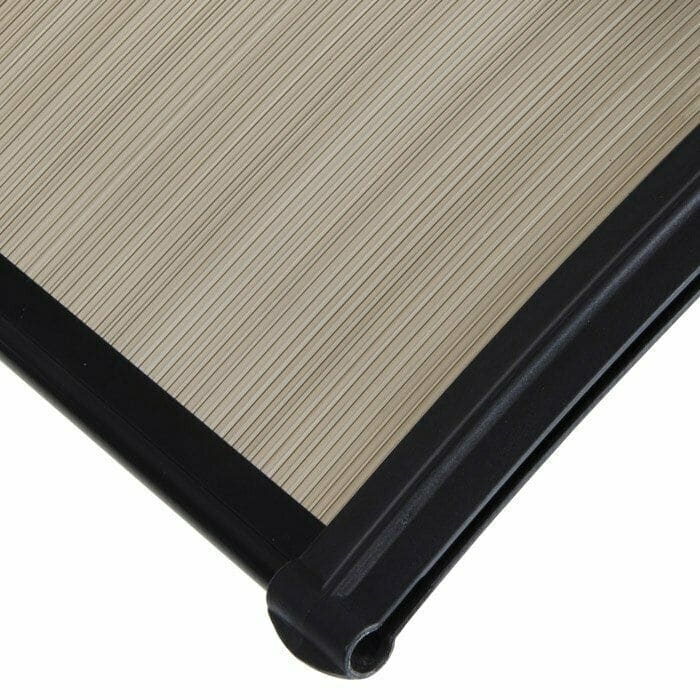 Pensilina con braccetti in polipropilene rinforzato, profili in alluminio sia sulla parte frontale che sul retro