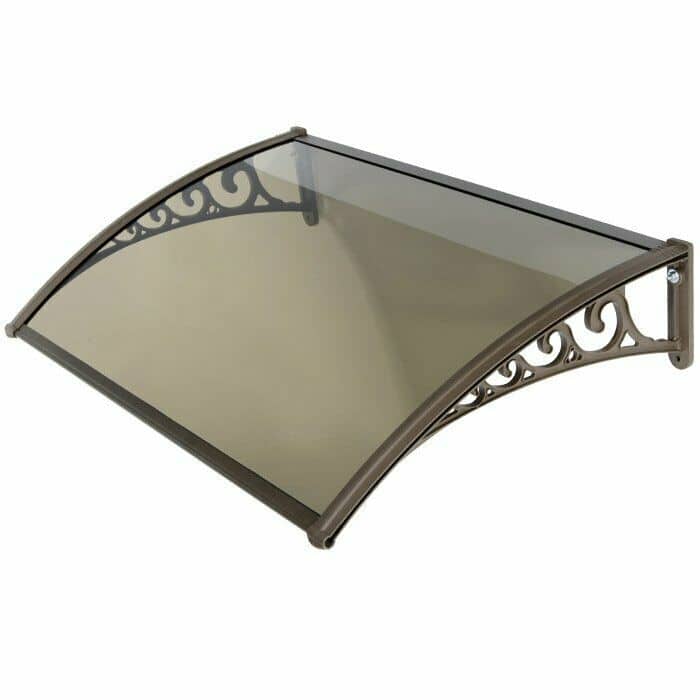 Pensilina con braccetti in polipropilene rinforzato, profili in alluminio sia sulla parte frontale che sul retro