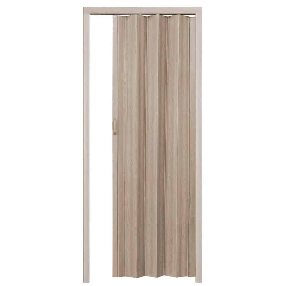 Porta a soffietto scomparsa pvc effetto legno chiaro venato rilievo chiusura con magnete casa maniglia cm 215×84 2714