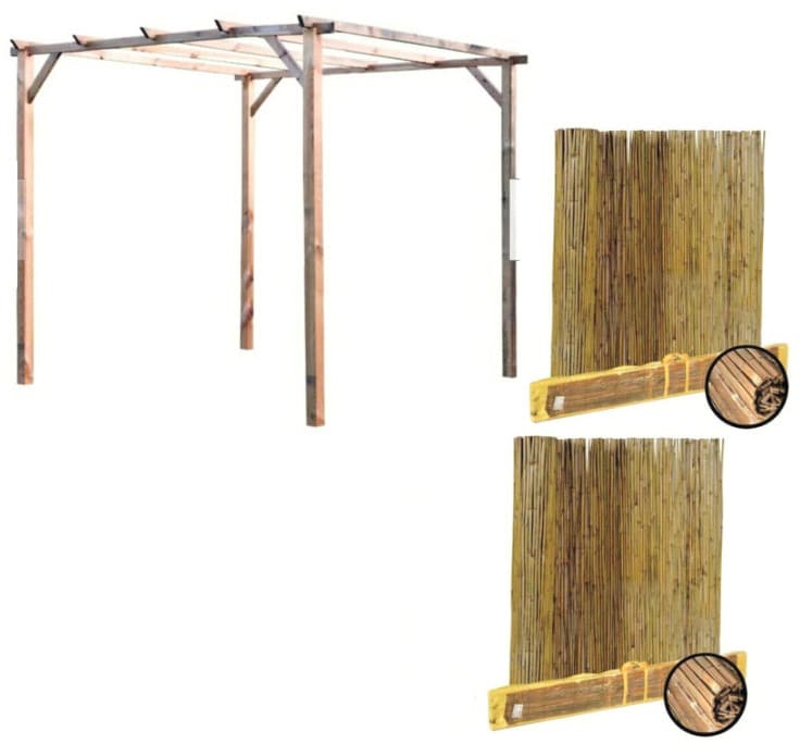 Pergola 3 x 3 metri + 2 coperture arelle in cannette di bambù