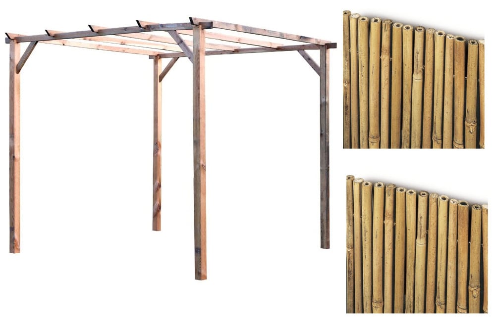 Kit pergola pergolato legno 3×3 mt copertura 2 pz arella canna bambù 015riv