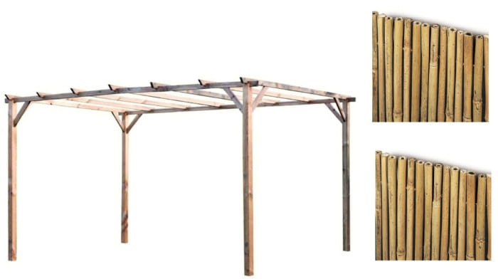 Kit pergola pergolato legno 3×4 mt copertura 2 pz arella canna bambù 804vn