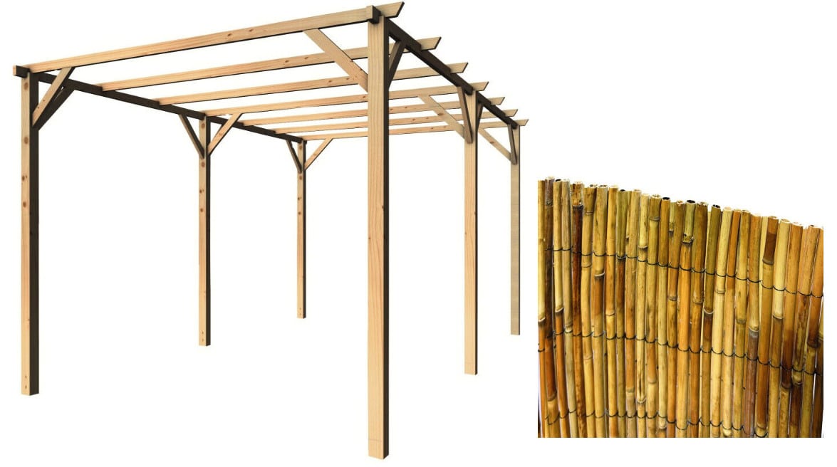 KIT PERGOLA PERGOLATO LEGNO 3X5 MT CON COPERTURA ARELLA CANNETTE BAMBU 898v