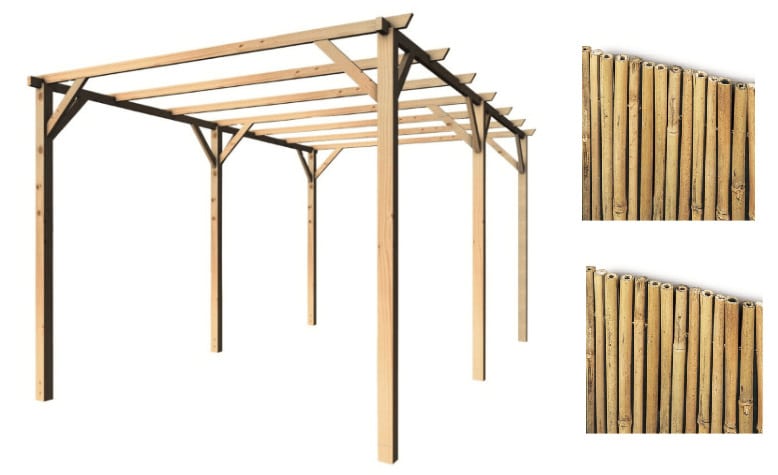 Kit pergola pergolato legno 3×5 mt copertura 2 pz arella 2,5×3 mt canna bambù 631