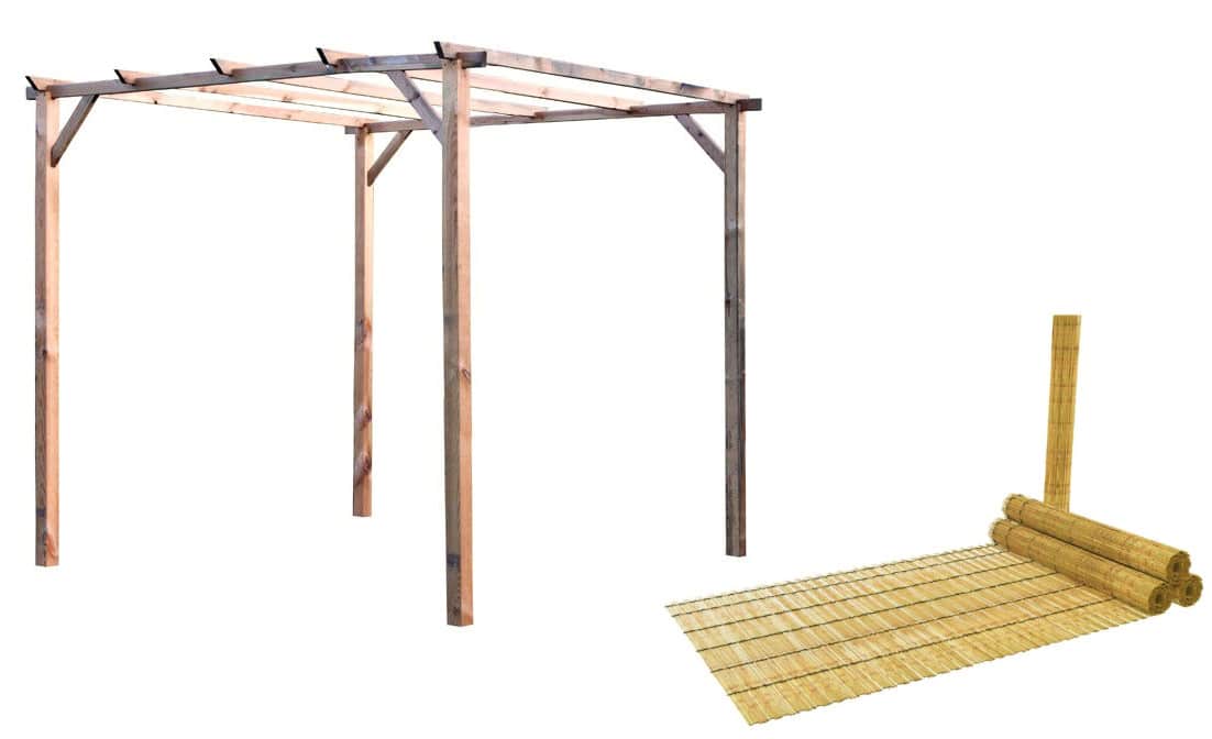 Kit pergola pergolato legno 3×3 mt copertura 2 pz arella mezza canna bambù 1,5×3 719bea