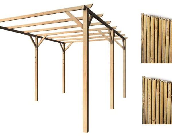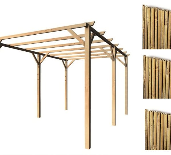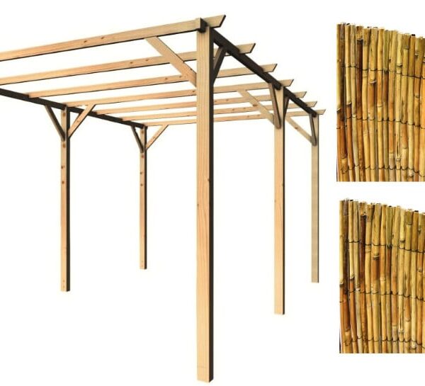 Kit pergola pergolato legno 3×6 mt copertura 3 pz arella 2×3 mt canna bambù 804vn