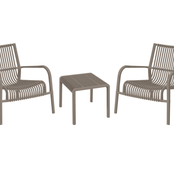Set 3 pz salotto da giardino esterno veranda in polipropilene poltrona sedia tavolino tortora 832v