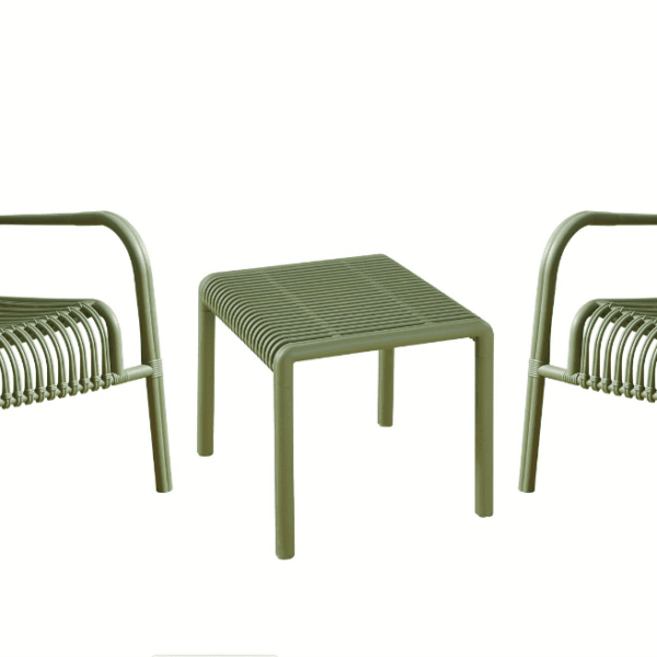 Set 3 pz salotto da giardino esterno veranda in polipropilene poltrona sedia tavolino verde 825v