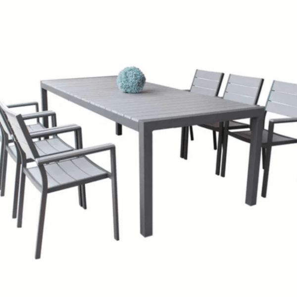 SET TAVOLO RETTANGOLARE E SEDIE GIARDINO RESINA EFFETTO LEGNO GRIGIO ESTERNO VE