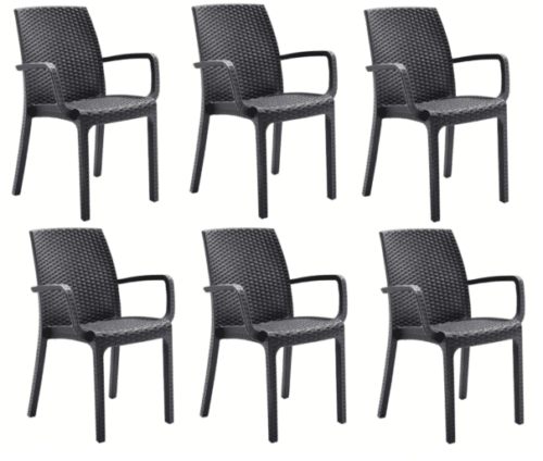 KIT 6 SEDIE SEDIA POLIPROPILENE BAR RISTORANTE INTERNO ESTERNO SIMIL RATTAN ANTRACITE