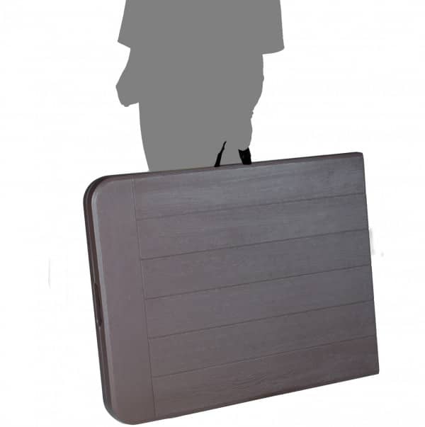 Tavolo pieghevole con struttura in metallo verniciato e piano in plastica HDPE
