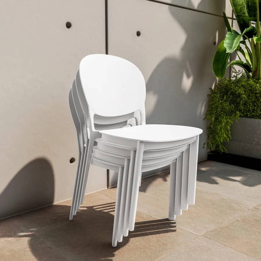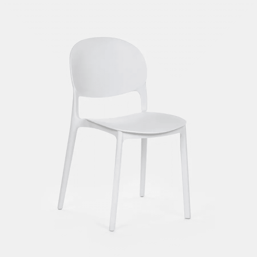 Dal design moderno e minimalista, queste sedie in polipropilene bianco si distinguono per lo schienale arrotondato, che unisce comfort ed estetica