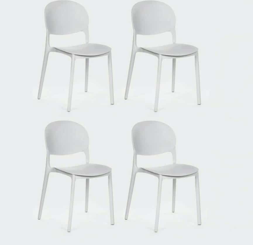 Dal design moderno e minimalista, queste sedie in polipropilene bianco si distinguono per lo schienale arrotondato, che unisce comfort ed estetica