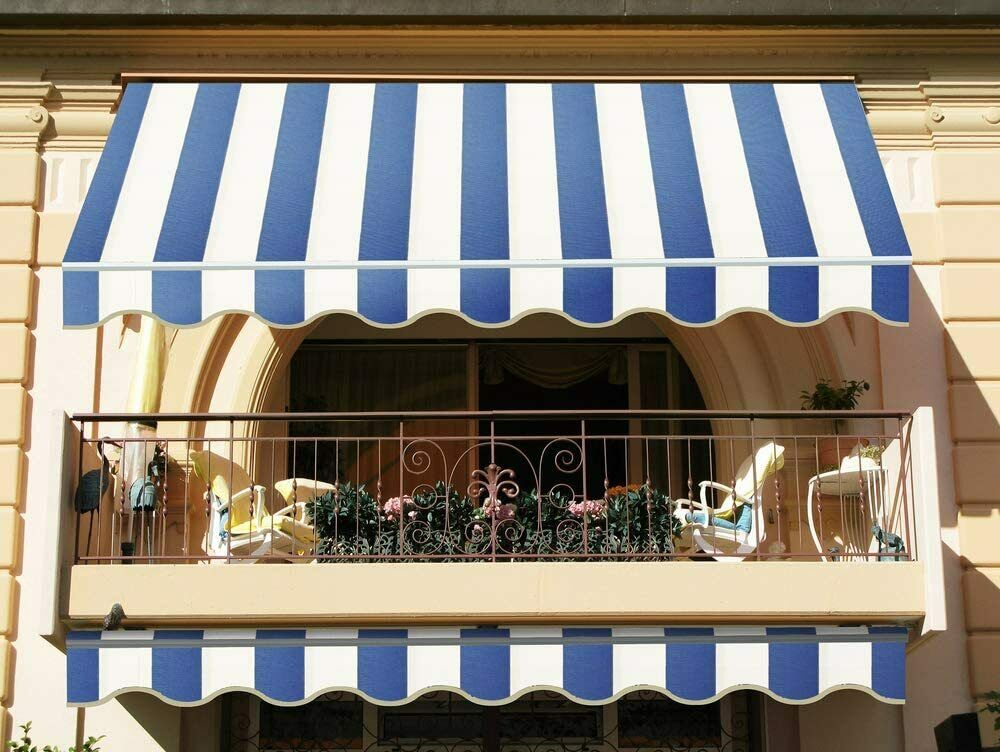 TENDA DA SOLE BALCONE ESTERNO AVVOLGIBILE 4×2,5 mt RECLINABILE BIANCO/BLU 317v