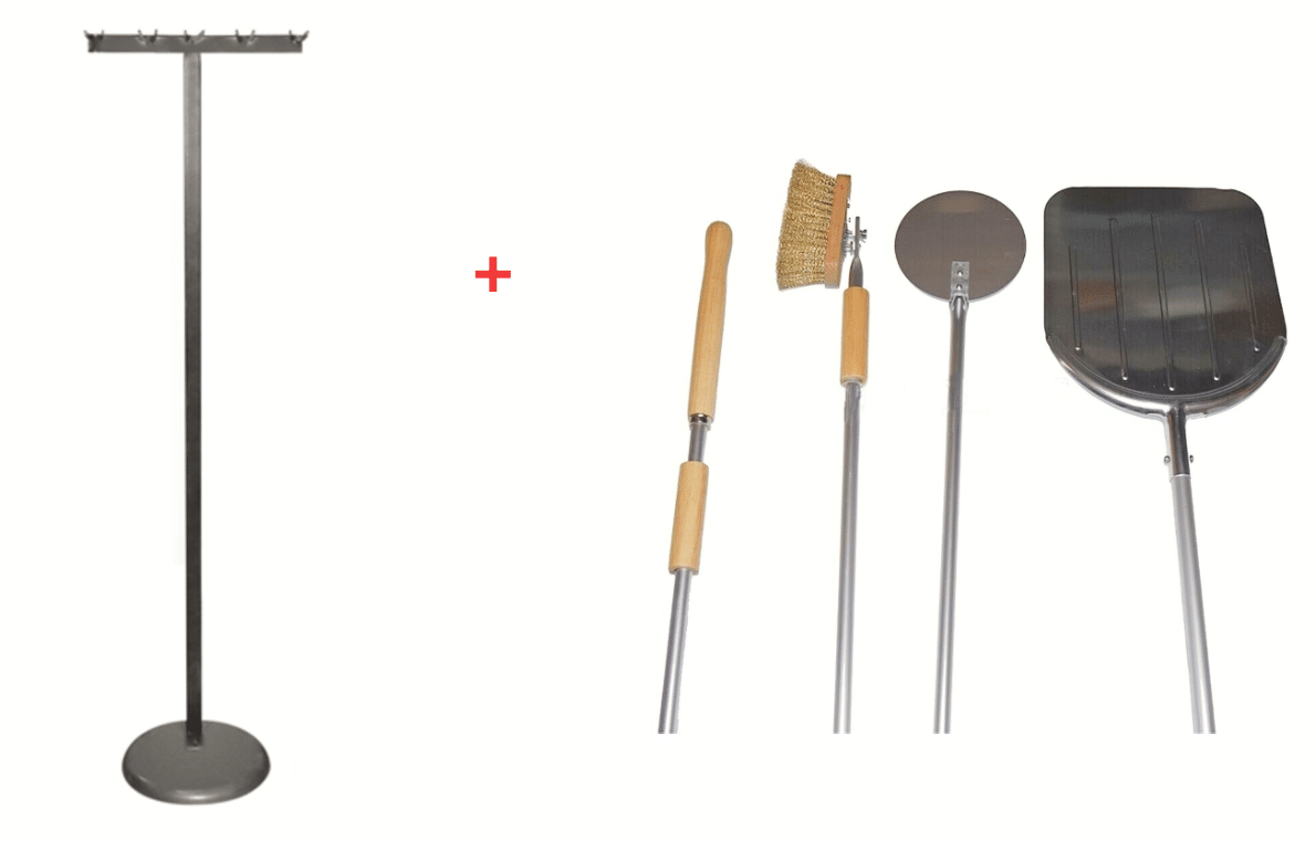 KIT SUPPORTO REGGI PALA PIZZA FORNO A LEGNA 6 POSTI PORTAPALE H150 + PALE 3 PZ