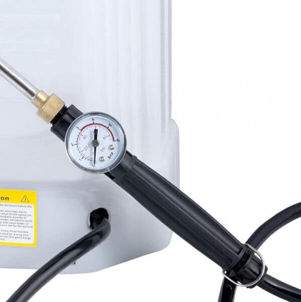 Pompa a pressione a spalla, realizzata in PVC per irrorazione pianteIdeale per orto, giardino o vivaioL’ugello regolabile consente di spruzzare un unico getto oppure di nebulizzare l’acqua per un naturale effetto foschiaNon utilizzare con solventi o sostanze infiammabiliCapacità serbatoio: 8 litri Lancia in plastica da 44 cm circa Lunghezza tubo 130 cm circa