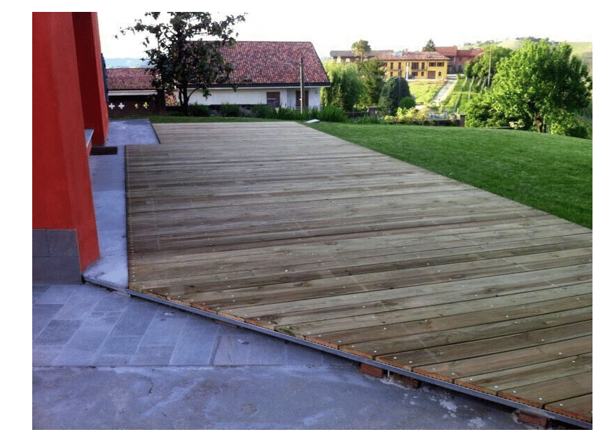 Tavola in pino impregnato in autoclave con zigrinatura antiscivolo da esterno