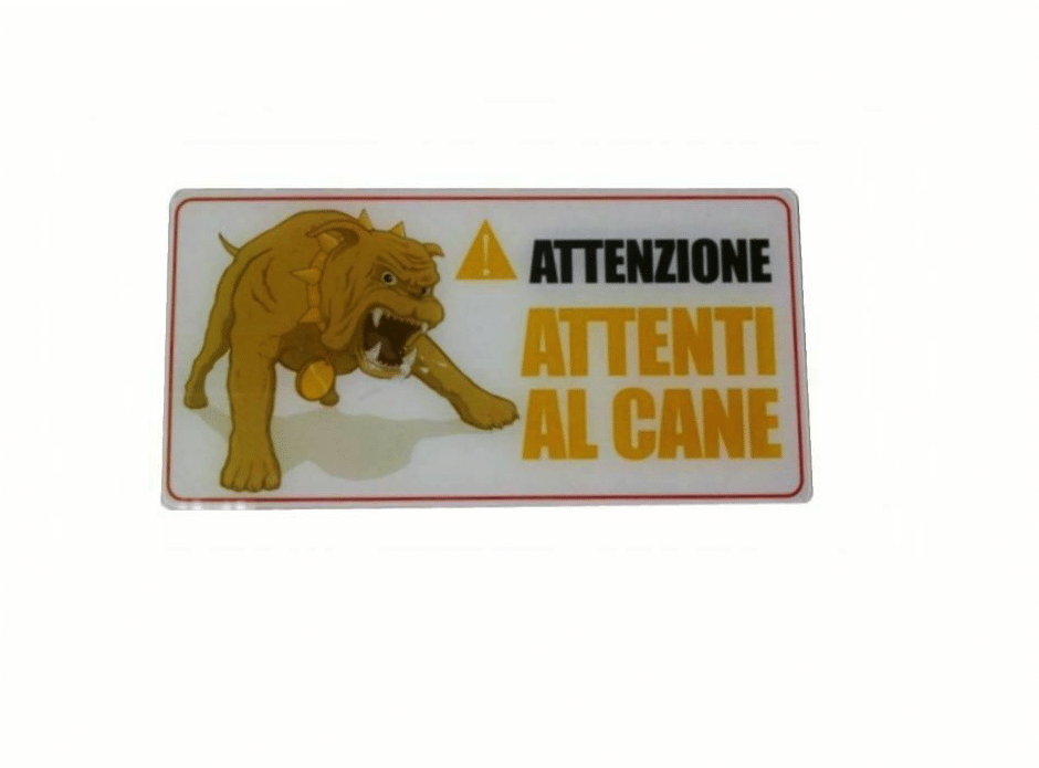CARTELLO DOG ATTENTI CANE CANI GUARDIA ATTENZIONE SEGNALE PERICOLO ADESIVO 10X20