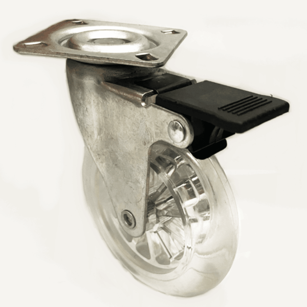 RUOTA RUOTE ROTELLA CARRELLO GIREVOLE CARRELLI TRASPARENTE CON FRENO 2″ 50 mm 662ba