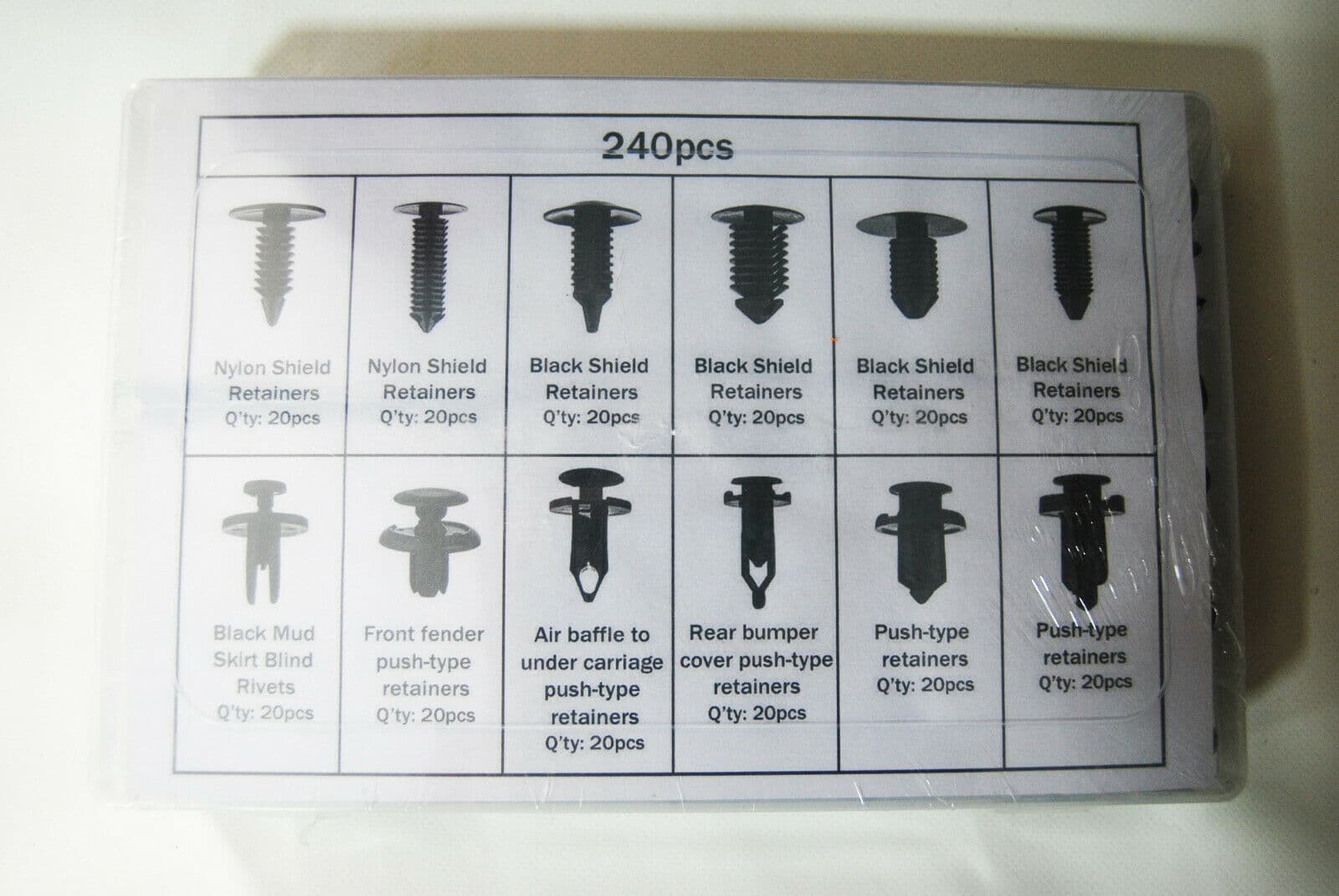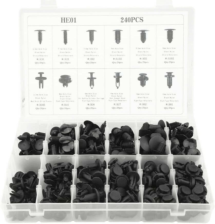 CLIP RIVETTI VITI DI FISSAGGIO PLASTICA 240 PZ AUTO CARROZZIERE PANNELLI 190BA