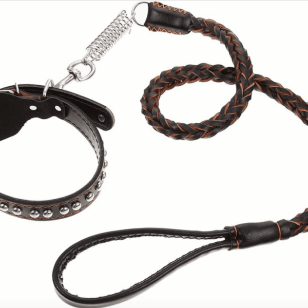 Kit guainzaglio intrecciato treccia + collare marrone cani cane animali domestici pet 024sw