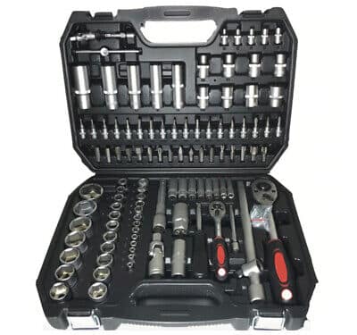 CASSETTA ATTREZZI CHIAVI BUSSOLA BUSSOLE 150pz CRICCHETTO 1/2″ 1/4″ PROLUNGA 678