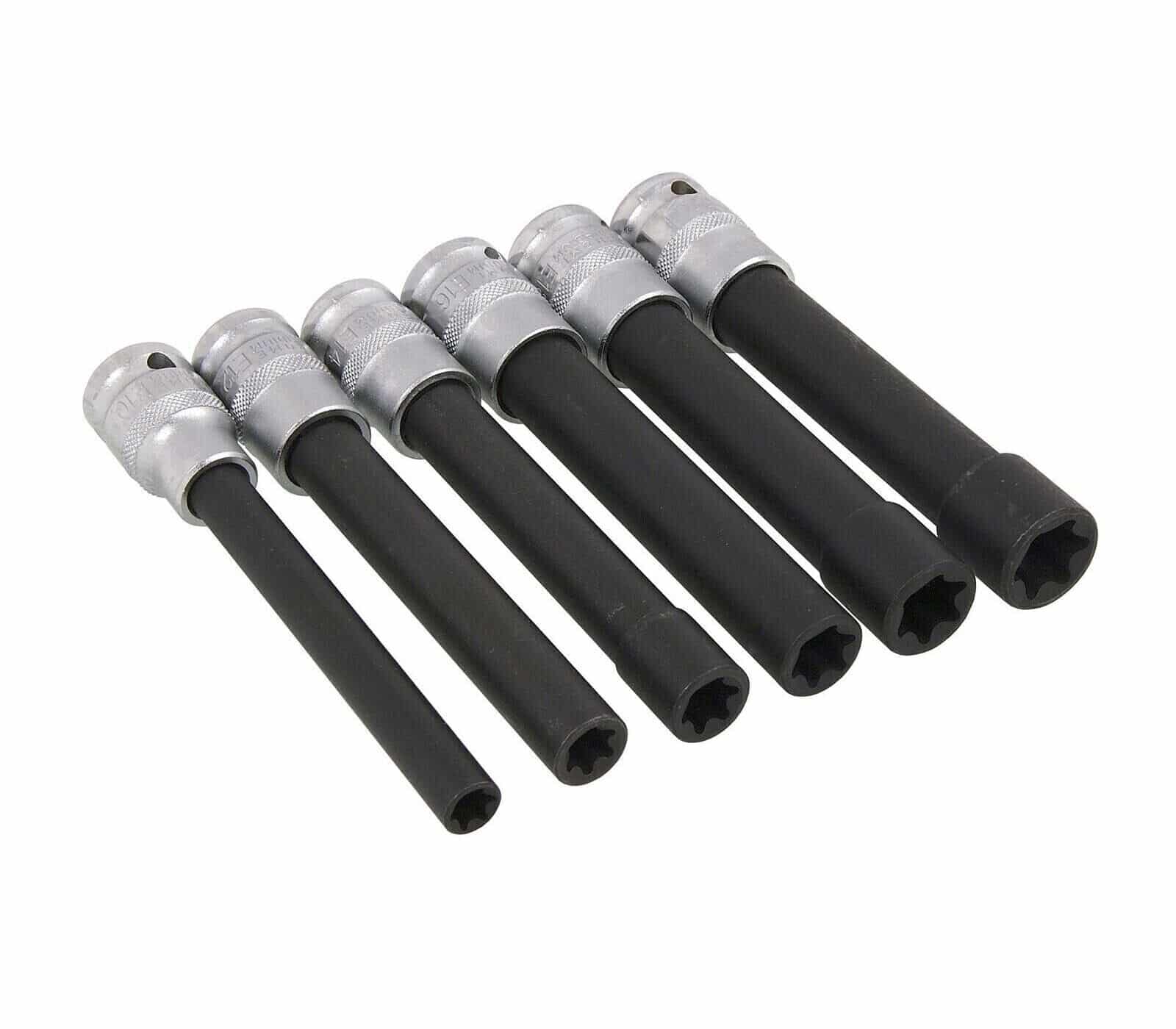 CHIAVI A BUSSOLA TORX FEMMINA LUNGHE CHIAVE E10 E20 IMPATTO 1/2″ 6 PZ 561xi