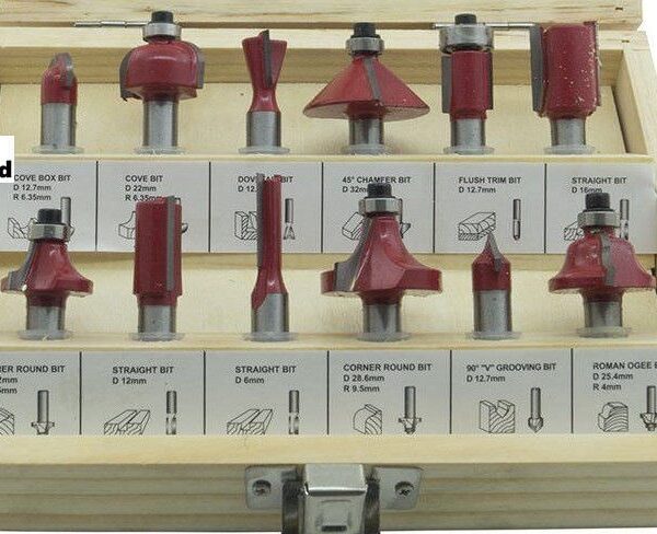 SET FRESE FRESA PUNTE PANTOGRAFO VERTICALE LEGNO BORDATRICE 8 MM 12 pz LARGHE