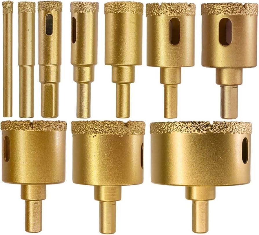 Le dimensioni più piccole, come 6 mm e 8 mm, sono perfette per forature di precisione su vetro o ceramica, mentre le misure maggiori, come 30 mm e 35 mm, possono essere utilizzate per forare materiali più spessi come il marmo o il granito