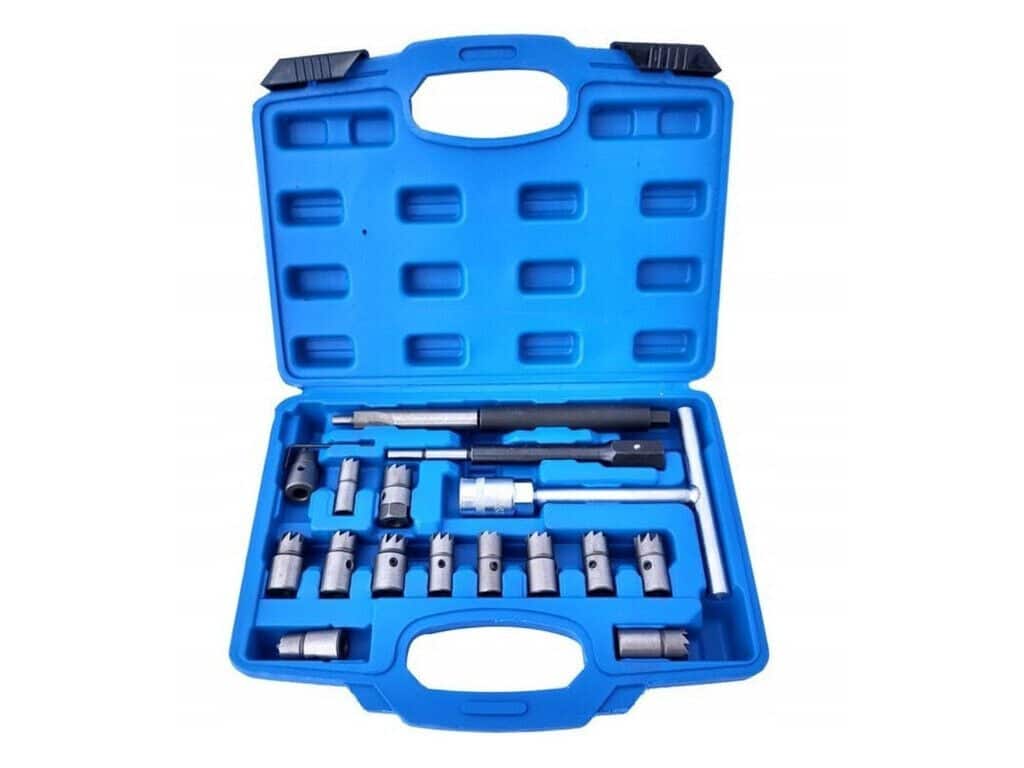 Pratico set per fresa iniettore diesel, usata per pulire e ripassare iniettori sui motori moderni comuni e nella testa del cilindro.