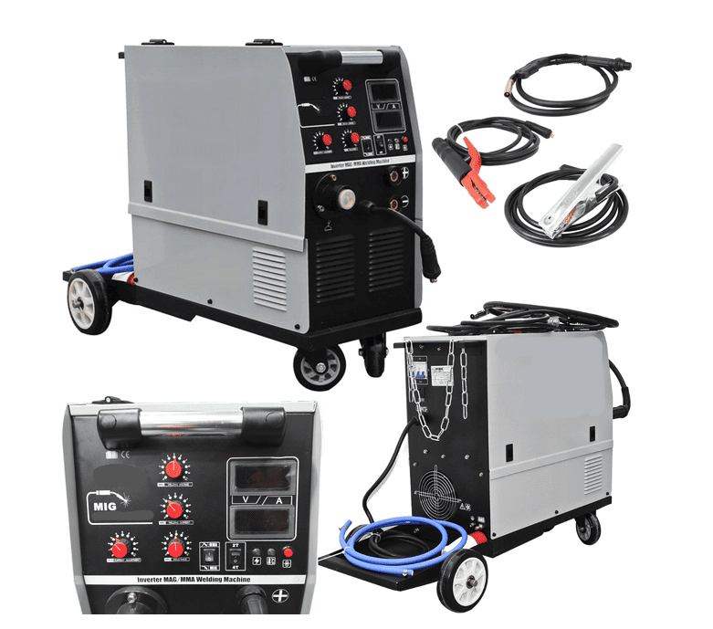 Un dispositivo con una vasta gamma di applicazioni, consente la saldatura con filo fusibile MIG, saldatura con elettrodo adesivo MMA, nonché con il metodo TIG Lift. Saldatrice compatta, leggera e mobile, ideale per una varietà di applicazioni. Ha un’alimentazione trifase 50 Hz e un trasformatore con un’efficienza dell’85%. Le saldature effettuate con questo tipo di saldatrice sono di altissima qualità. Maggiore flessibilità con la capacità di saldare TIG, utilizzato per la saldatura di acciaio altolegato e alluminio, e MIG, utilizzato per la saldatura di metalli diversi e alluminio più spesso. A differenza delle saldatrici a trasformatore, consuma una piccola quantità di corrente. Questa saldatrice è anche più leggera ed efficiente ed è più spesso utilizzata dai professionisti. L’elevata mobilità è fornita da due ruote girevoli in gomma grandi e due piccole. Dotato di un ripiano con inserto in gomma per riporre gli accessori e di una piattaforma posteriore per una bombola di CO2.