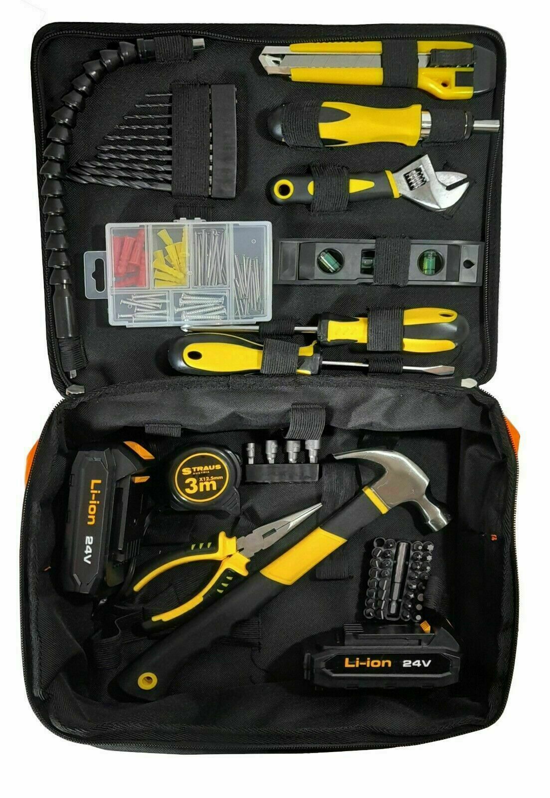 TRAPANO AVVITATORE DOPPIA BATTERIA LITIO 24 V + 150 ACCESSORI BORSA LAVORO 005ST