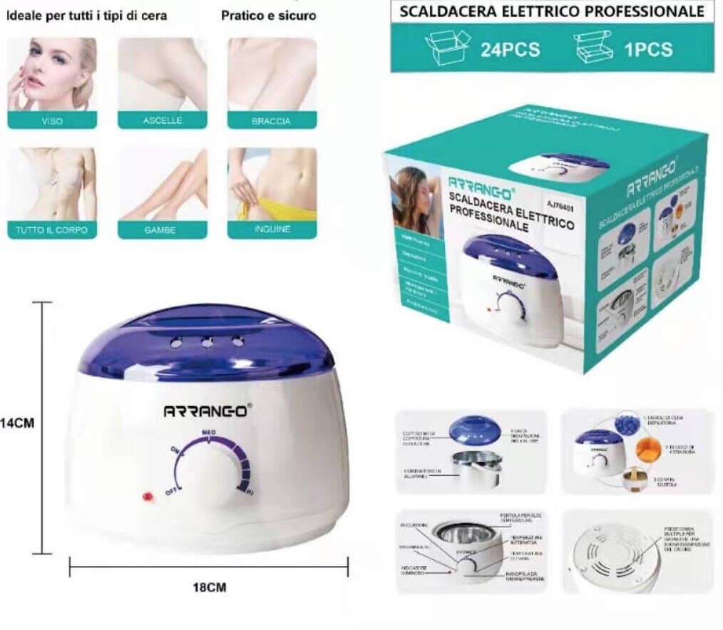 Utilissimo ed eccellente prodotto nel campo estetico, il nuovo scaldacera elettrico professionale . La struttura ed il funzionamento del fornetto è studiato per disporre di una perfetta fusione della cera a 360°, per garantire maggiori risultati durante le operazioni di depilazione. Può essere utilizzata con ogni tipo di cera depilatoria, compresa quella a base di paraffina e ciò e possibile grazie al termostato con il quale stabilire la temperatura costante che il prodotto dovrà rilasciare. Ulteriore qualità e il salva bordo che evita eventuali e spesso problematiche colature accidentali durante l’utilizzo. Il cestello interno, oltre ad esser dotato di un manico per un estrazione semplice e veloce, e facilmente lavabile con normalissima acqua corrente. Il coperchio garantisce il mantenimento costante del calore in fase di fusione, e mantenendo incontaminata la cera permettendo cosi che essa si sciolga nel miglior modo possibile. Termostato con 3 gradi di potenza, e LED che indica il corretto funzionamento del fornetto. L alimentazione avviene inserendo la spina in una normalissima presa di rete da casa da 220V. Un prodotto legato in particolar modo al mondo dell’estetica, ma anche per chi adora dedicarsi alla cura ed alla bellezza del proprio corpo rimanendo comodamente in casa propria.