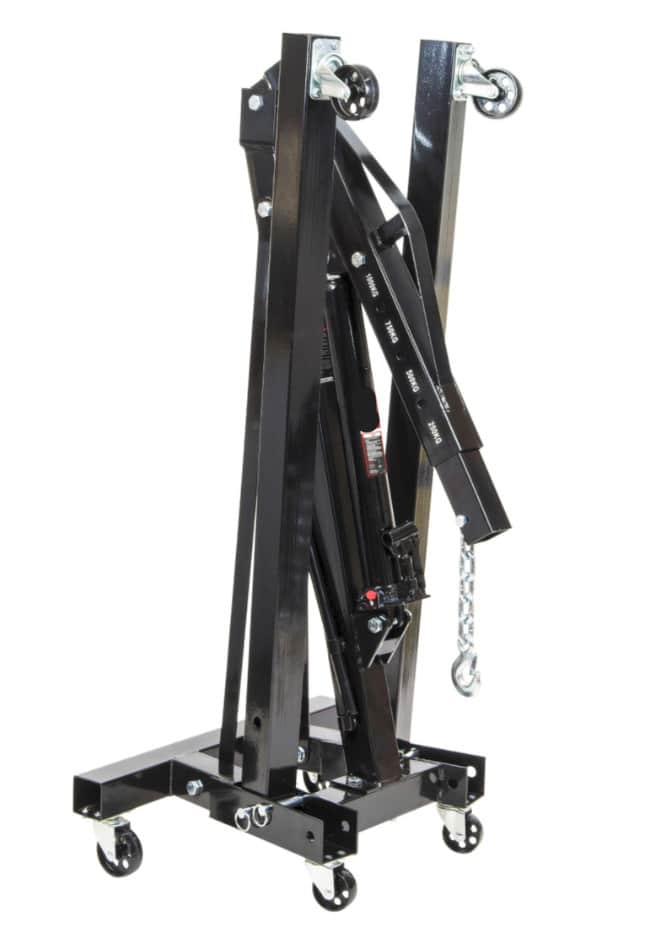 Realizzato in acciaio per utensili ad alta resistenza, verniciato a polvere Dispone di 6 ruote con cuscinetti a sfera che ne facilitano la manovrabilità Possibilità di regolare l’estensione del braccio in 4 posizioni: 2T, 1 1/2T, 1T, 1/2T Sollevamento/abbassamento idraulico con leva Gambe allungabili per una migliore stabilità All’estremità del braccio c’è una catena con un gancio Design pieghevole Progettato per sollevare e abbassare cambi, motori, frizioni, ecc. Indispensabile in ogni officina