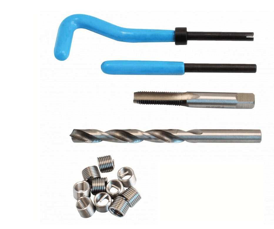 Questo kit contiene tutti gli utensili necessari alla riparazione di filettature femmina danneggiate in acciaio, ghisa e alluminio