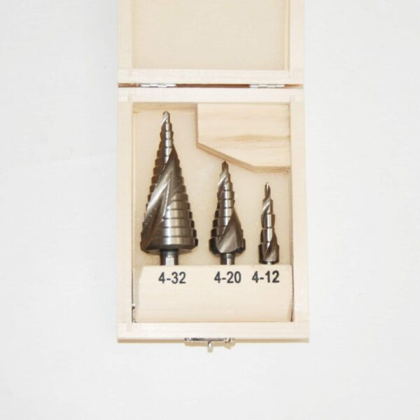 FRESE CONICHE ELICOIDALI ALLARGAFORI A GRADINO METALLO 4 32 mm 3 PZ IN ACCIAIO G