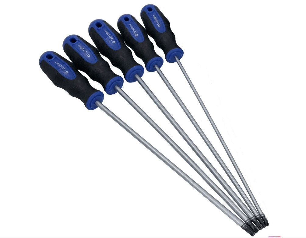 KIT CACCIAVITI LUNGHI 300 MM TORX STELLA CON FORO T15 T20 T25 T27 T30 CRV 020X