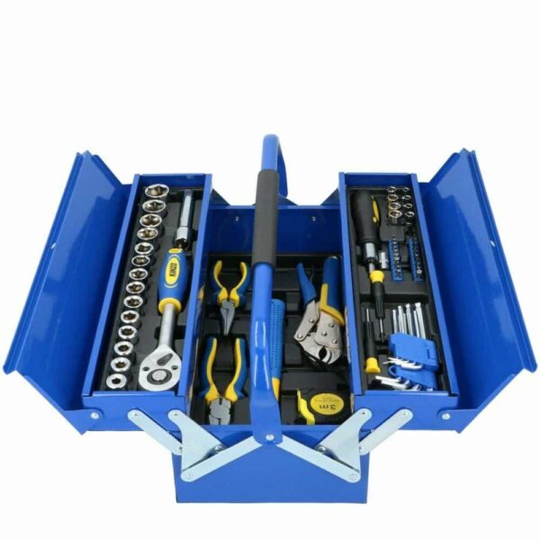 CASSETTA VALIGETTA ATTREZZI 5 SCOMPARTI 85 PZ UTENSILI CHIAVI PINZE CRICCHETTI A