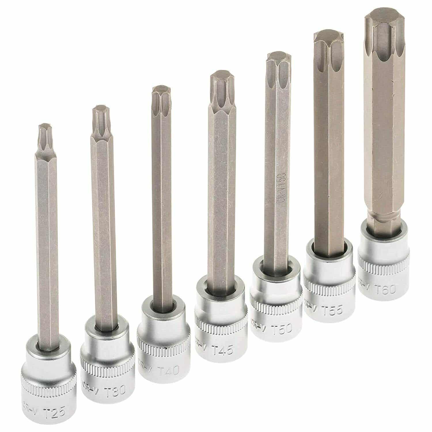 CHIAVI A BUSSOLA TORX LUNGHE PUNTA 110 MM 3/8″ BUSSOLE ACCIAIO CR-V T25 T60 399S