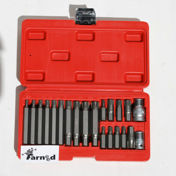 INSERTI CHIAVI BUSSOLE TORX CRICCHETTO 15 PZ T20 T55 ADATTATORE ESAGONALE 1/2″ R